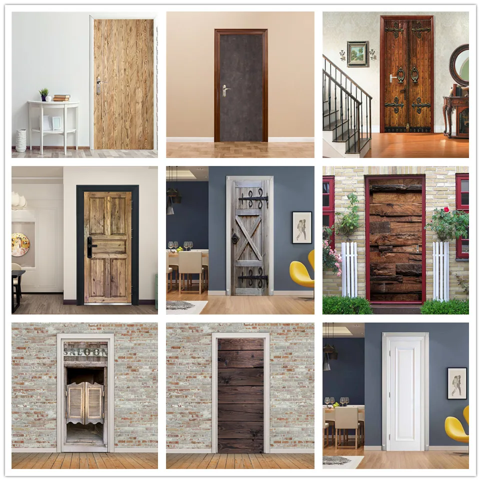 Pegatina De Puerta De Madera Vintage Autoadhesiva Impermeable Papel Tapiz Extraible De Pvc Poster Para Sala De Estar Y Dormitorio Pegatina De Diseno Para El Hogar Calcomanias Para La Puerta Aliexpress