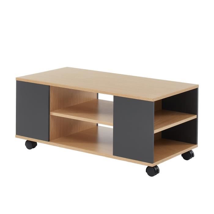 Table Basse Style Scandinave Grise Et Noire Avec Espace De Rangement