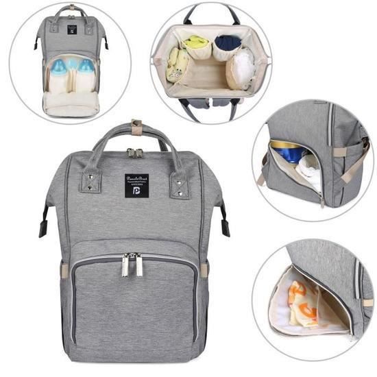 Sac A Dos A Langer Impermeable A L Eau Sac De Bebe Voyage Sac A Langer De Grande Capacite Avec Crochets De Poussette Gris Et Gris Achat Vente Sac A Langer 6875422318736