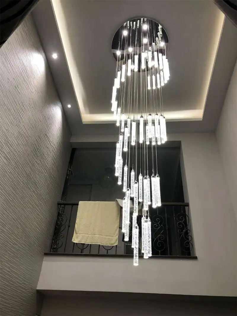 Decoracion De Boda Escalera Larga Y Moderna Candelabro De Cristal Lamparas Colgantes Para Restaurante Para Techos Altos Luces Colgantes Aliexpress