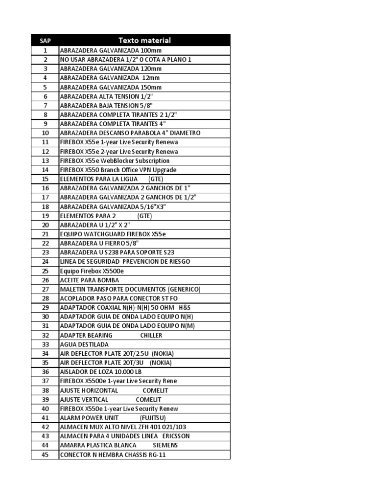 SAP.xlsx | Cable coaxial | Conector eléctrico