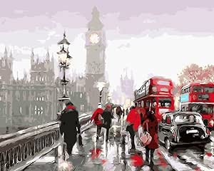 Yeesam Art Nouvelles Peinture Au Numero Pour Adulte Enfants Londres Les Autobus Vue De La Rue 40x50 Cm Diy Painting By Numbers Numero Cadeaux De Noel Amazon Fr Jeux Et Jouets