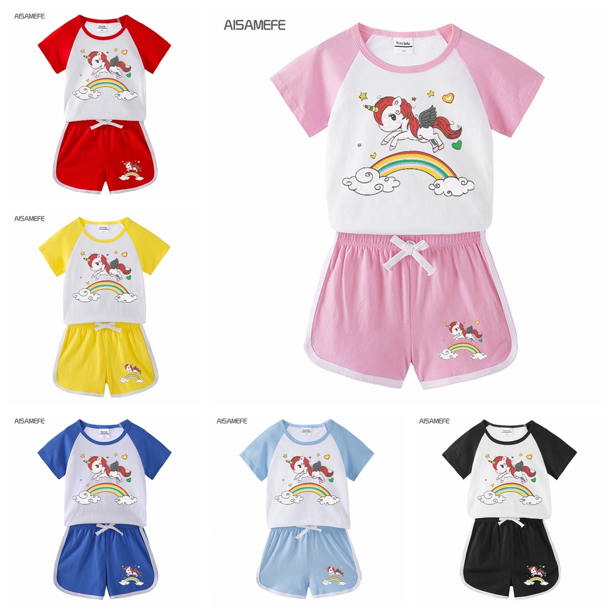 Aisamefe 2pcs Kids Suits Suits Colorful Rainbow Unicorn Painting Tshirt Short Pants Ins Style Summer Sports Sets Cotton Baby Clothes Shopee Philippines