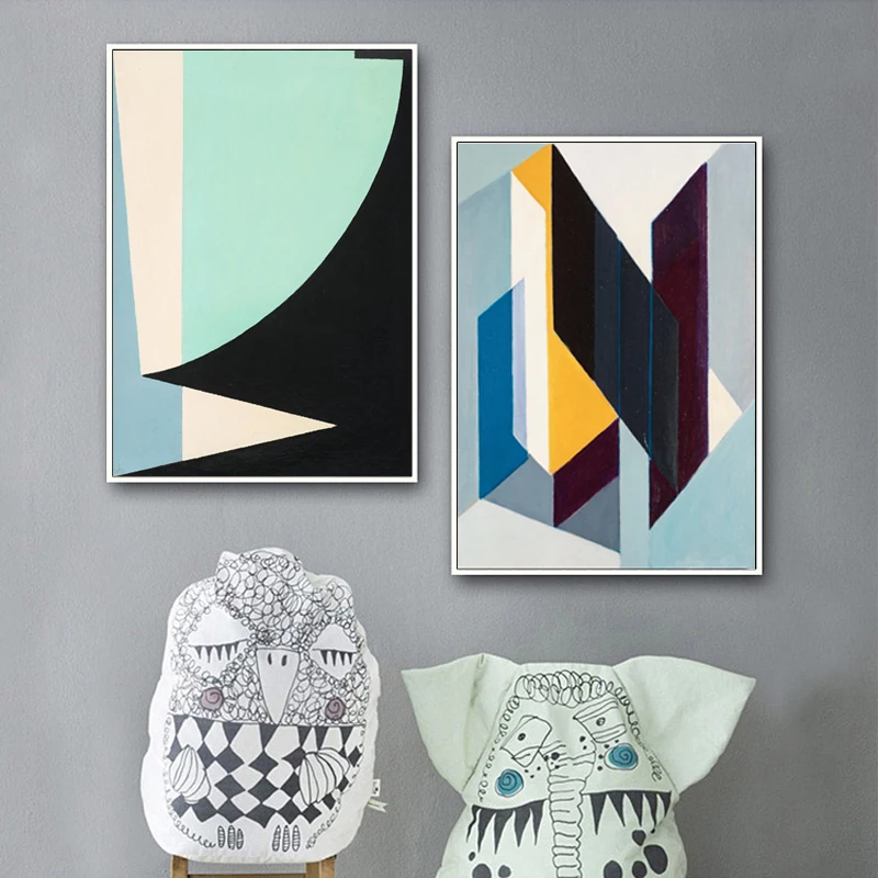Géométrie toile peintures abstrait Style nordique moderne frais bleu affiches mur Art photos pour salon chambre pas de cadre | AliExpress