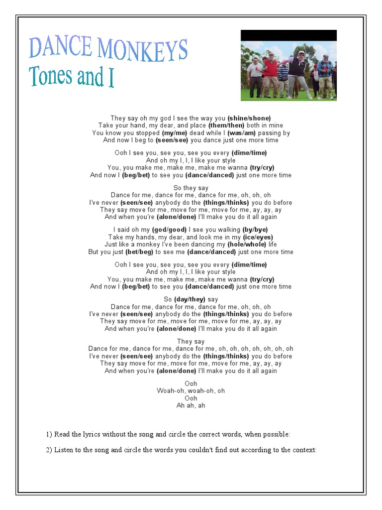 1 Read The Lyrics Without The Song And Circle The Correct Words When Possible 2 Listen To The Song And Circle The Words You Couldn T Find Out According To The Context