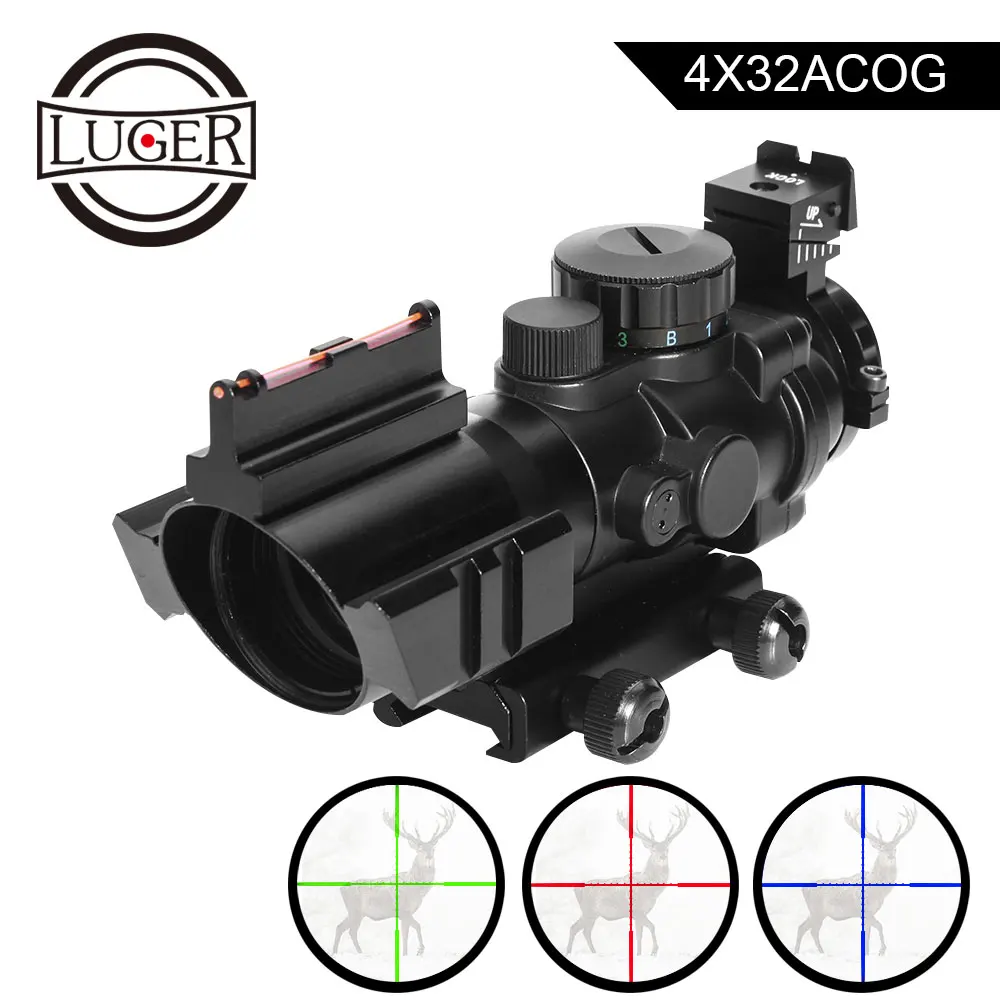 LUGER acog 4x32 Red Dot Riflescope Reflex Tactical Optics Sight Scope With 20mm Rail For Airsoft Guns Hunting Riflescope|Riflescopes| - AliExpress
