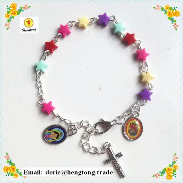 Envío gratis 10 unidades/Paquete de cuentas de estrellas bebé virgen Guadalupe niños Rosario, icono colorido Rosario lindo iconos pulsera OFERTA ESPECIAL|rosary keychain|bracelets for men goldbracelet magnetic - AliExpress